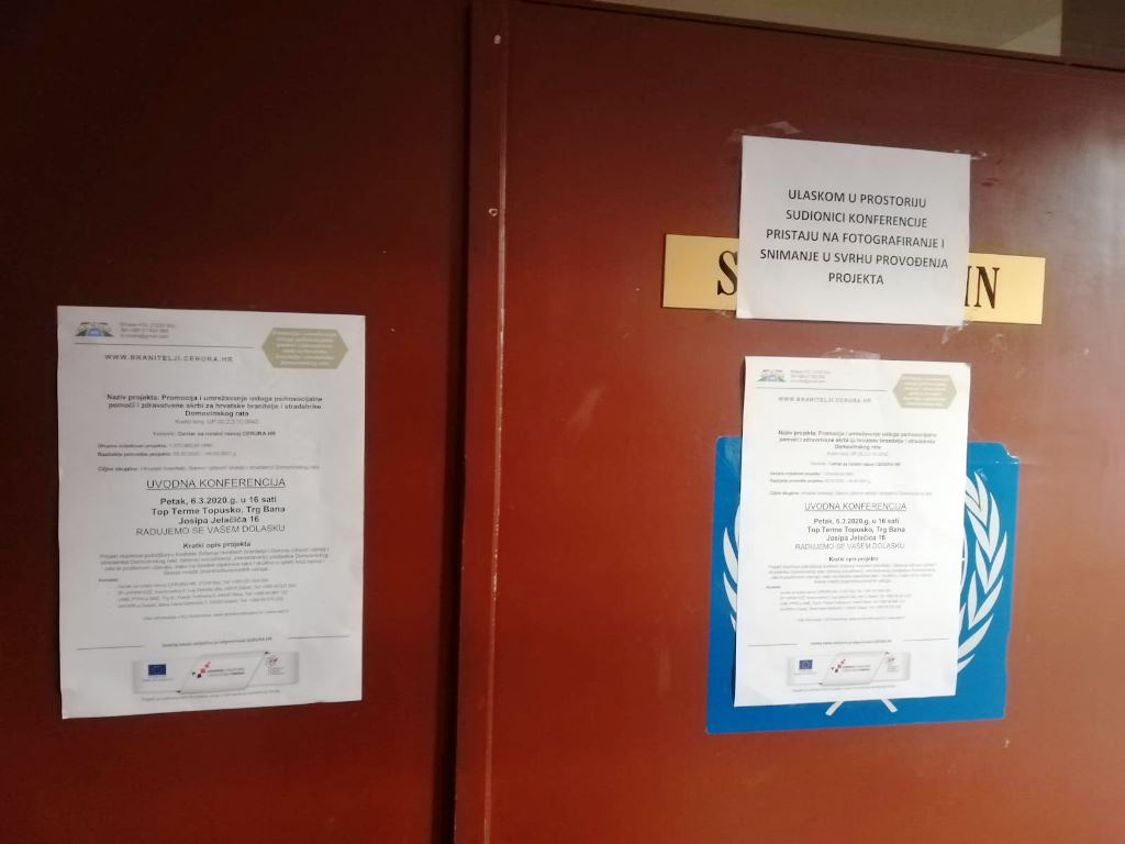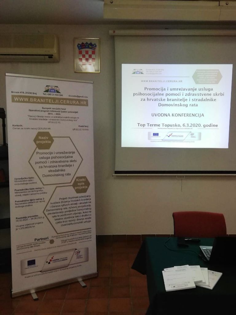 U konferencijskoj sali Top Terma Topusko, u petak 6. ožujka 2020. godine održana je Konferencija o projektu „Promocija i umrežavanje usluga psihosocijalne pomoći i zdravstvene skrbi za hrvatske branitelje i stradalnike Domovinskog rata“.