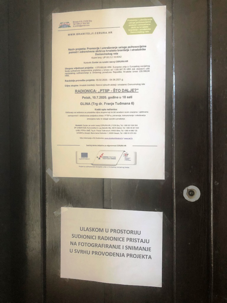 U prostorijama UHBL PTSP Sisačko-moslavačke županije, 10. srpnja 2020. godine održana je Radionica: „PTSP-Što dalje?“ u sklopu projekta „Promocija i umrežavanje usluga psihosocijalne pomoći i zdravstvene skrbi za hrvatske branitelje i stradalnike Domovinskog rata“ (UP.02.2.2.10.0042).